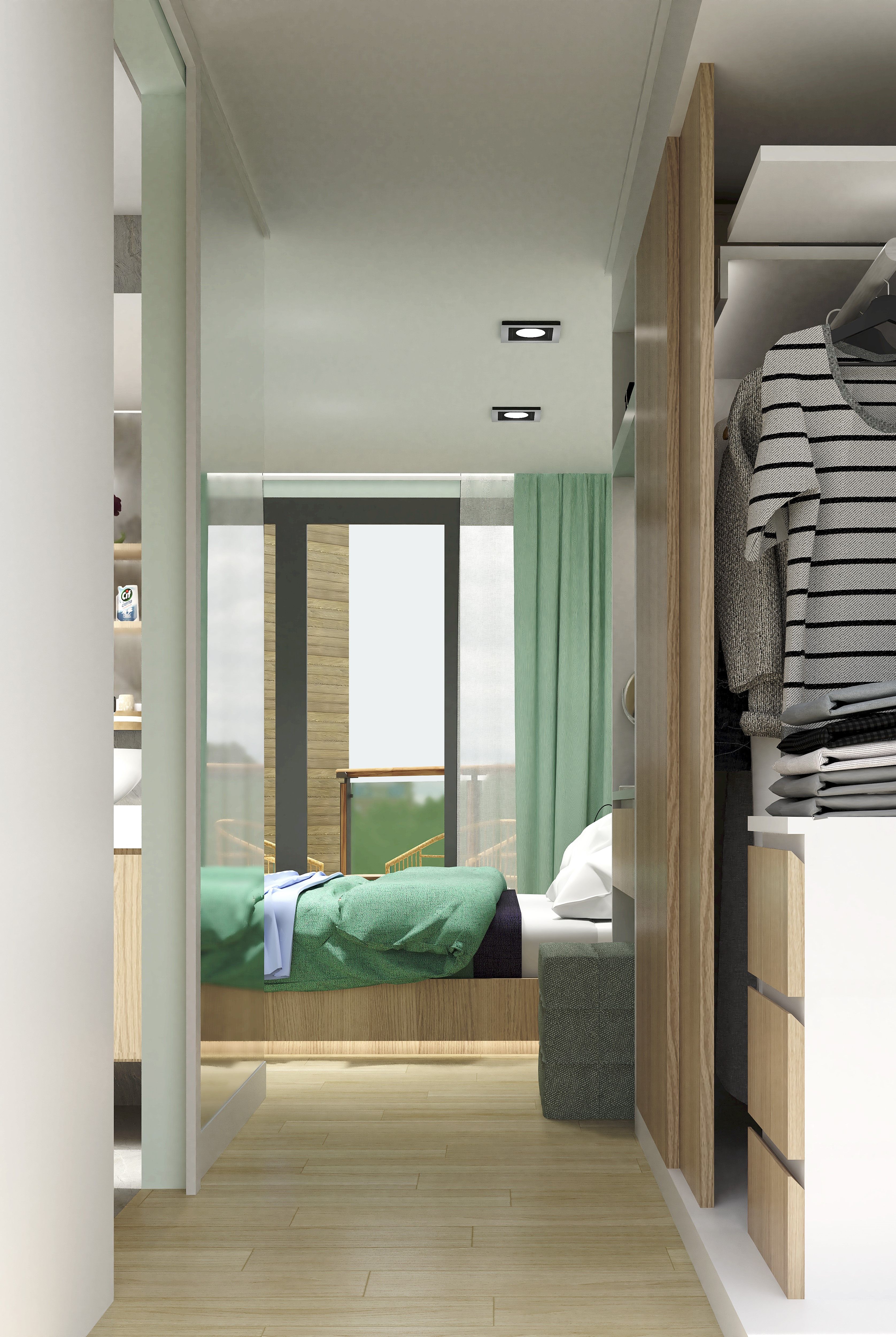 This smart space combines a living room, bedroom, and functional kitchen with access to a balcony. The well-thought-out layout creates an atmosphere of both comfort and spaciousness.